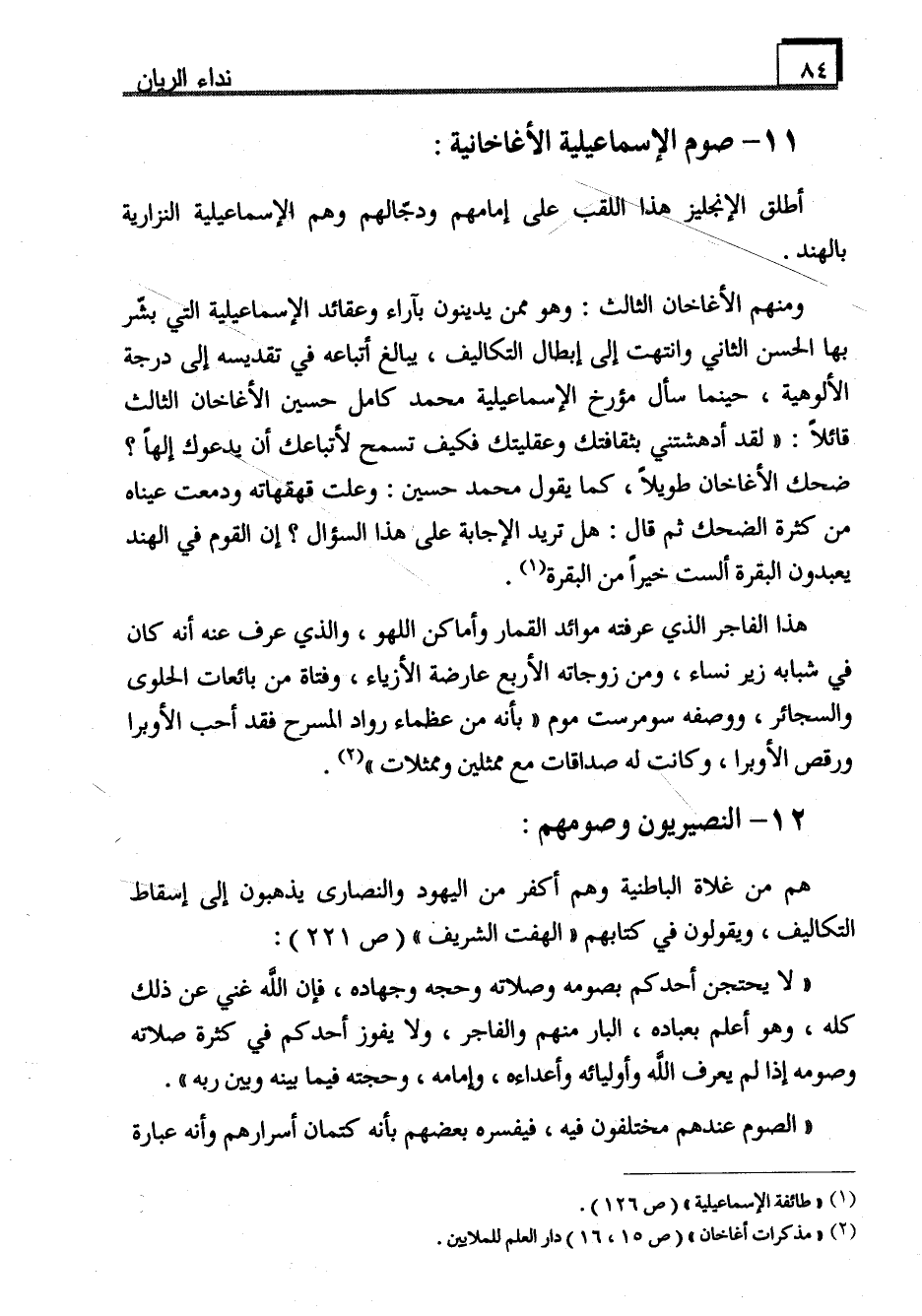 (1) "طائفة الإسماعيلية" (ص 126) .