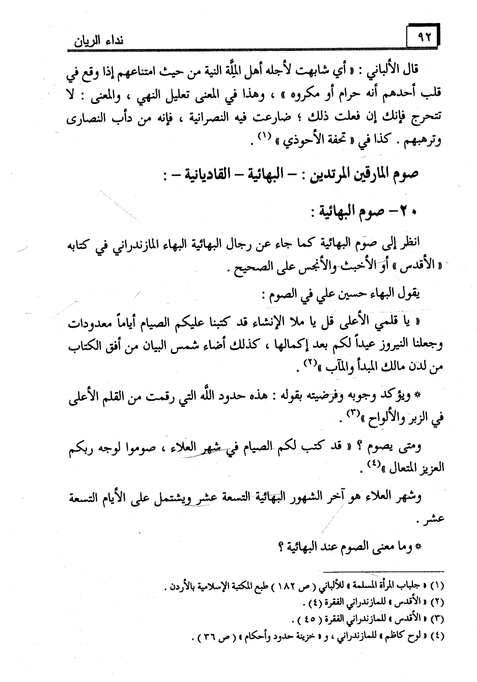 صوم المارقين المرتدين:- البهائية -القاديانية-: