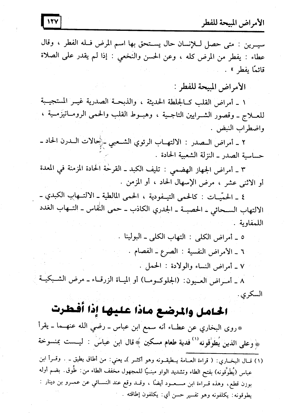 (1) قال البخاري: (قراءة العامة يطيقونه وهو أكثر) -يعني: من أطاق يطيق-. وقرأ ابن عباس (يُطَوَّقونه) بفتح الطاء وتشديد الواو مبنيًا للمجهول مخفف الطاء من: طُوق. بضم أوله بوزن قطع، وهذه قراءة ابن مسعود أيضاً، وقد وقع عند النسائي عن عمرو بن دينار: يطوقونه: يكلفونه وهو تفسير حسن أي: يكلفون إطاقته.