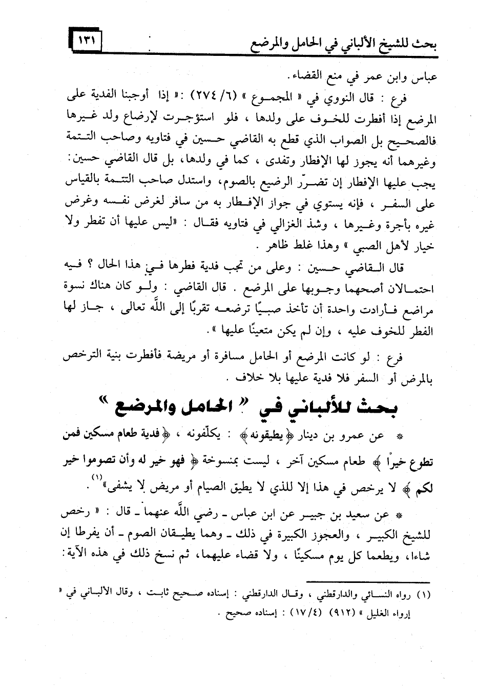 بحث للألباني في "الحامل والمرضع"