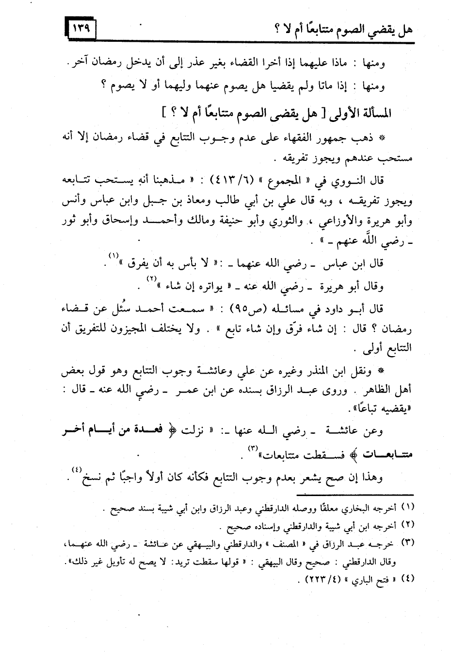 المسألة الأولى [هل يقضى الصوم متتابعًا أم لا؟]