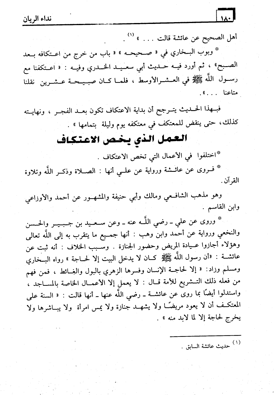 * اختلفوا في الأعمال التي تخص الاعتكاف.