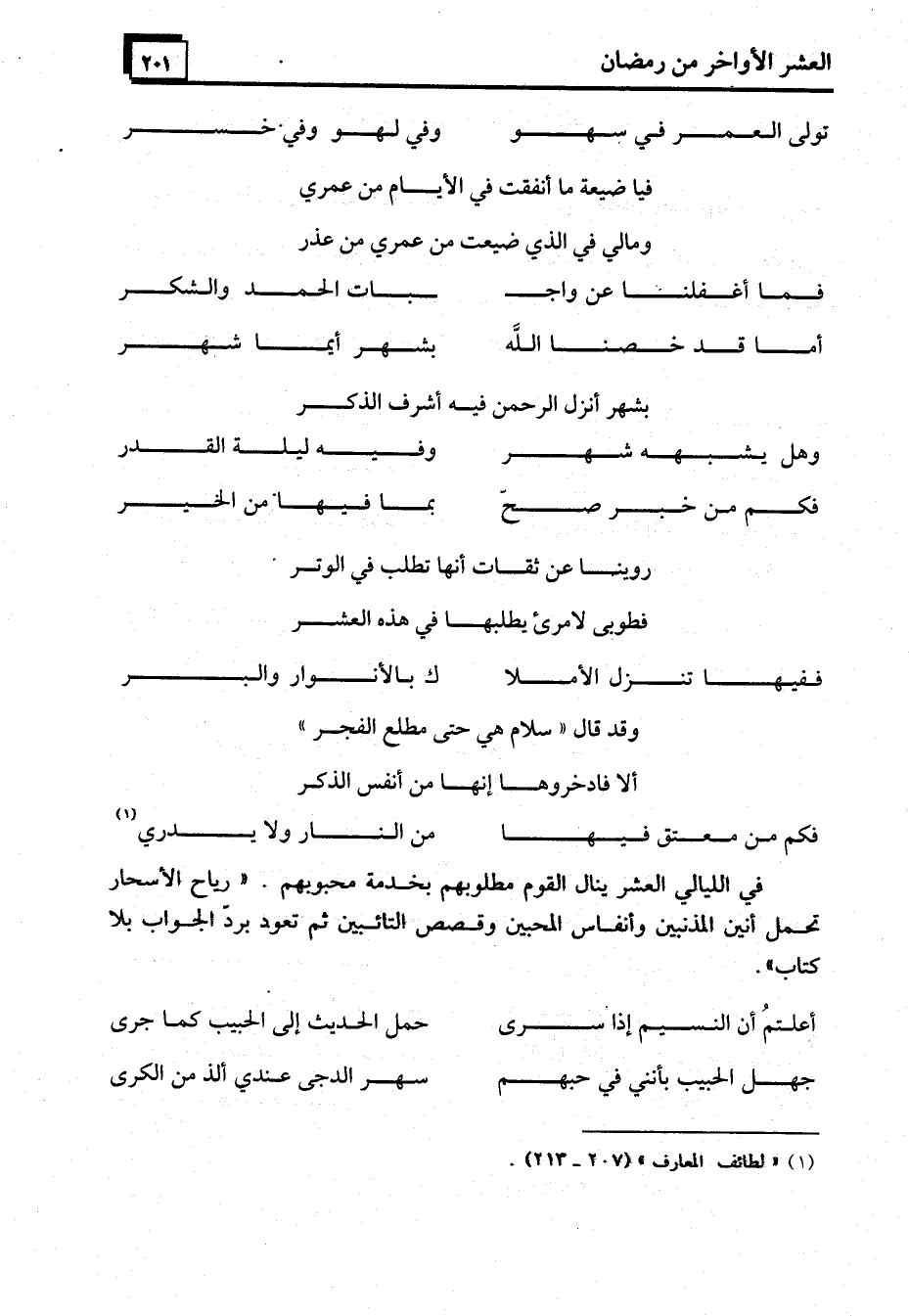 في الليالي العشر ينال القوم مطلوبهم بخدمة محبوبهم. "رياح الأسحار تحمل أنين المذنبين وأنفاس المحبين وقصص التائبين ثم تعود بردّ الجواب بلا كتاب".