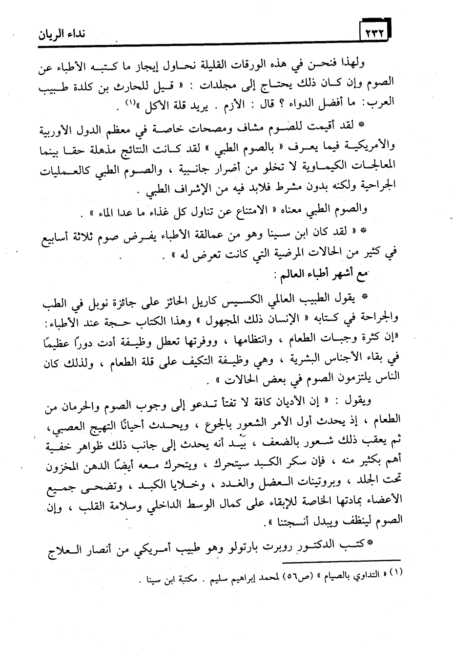 (1) "التداوي بالصيام" (ص56) لمحمد إبراهيم سليم. مكتبة ابن سينا.