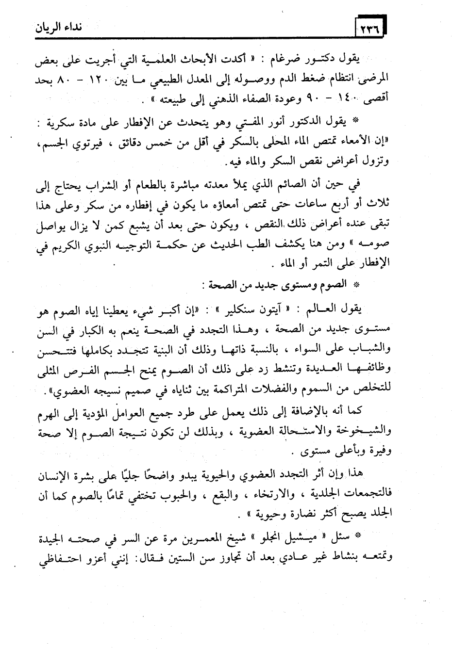 * الصوم ومستوى جديد من الصحة: