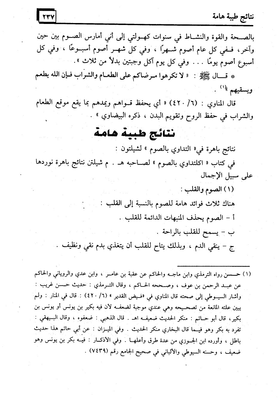 أ- الصوم يحذف المنبهات الدائمة للقلب.