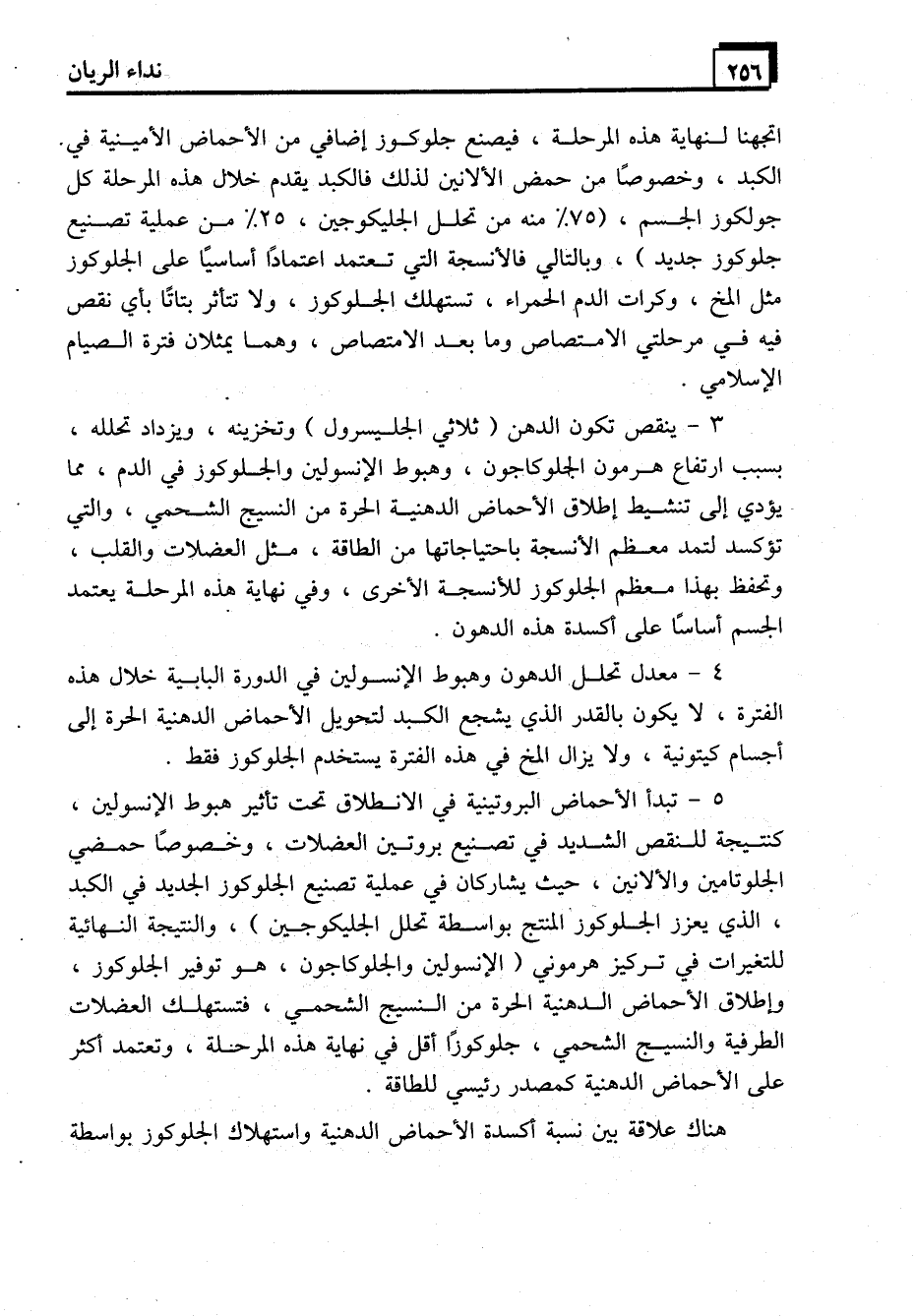 4- معدل تحلل الدهون وهبوط الإنسولين في الدورة البابية خلال هذه الفترة، لا يكون بالقدر الذي يشجع الكبد لتحويل الأحماض الدهنية الحرة إلى أجسام كيتونية، ولا يزال المخ في هذه الفترة يستخدم الجلوكوز فقط.
