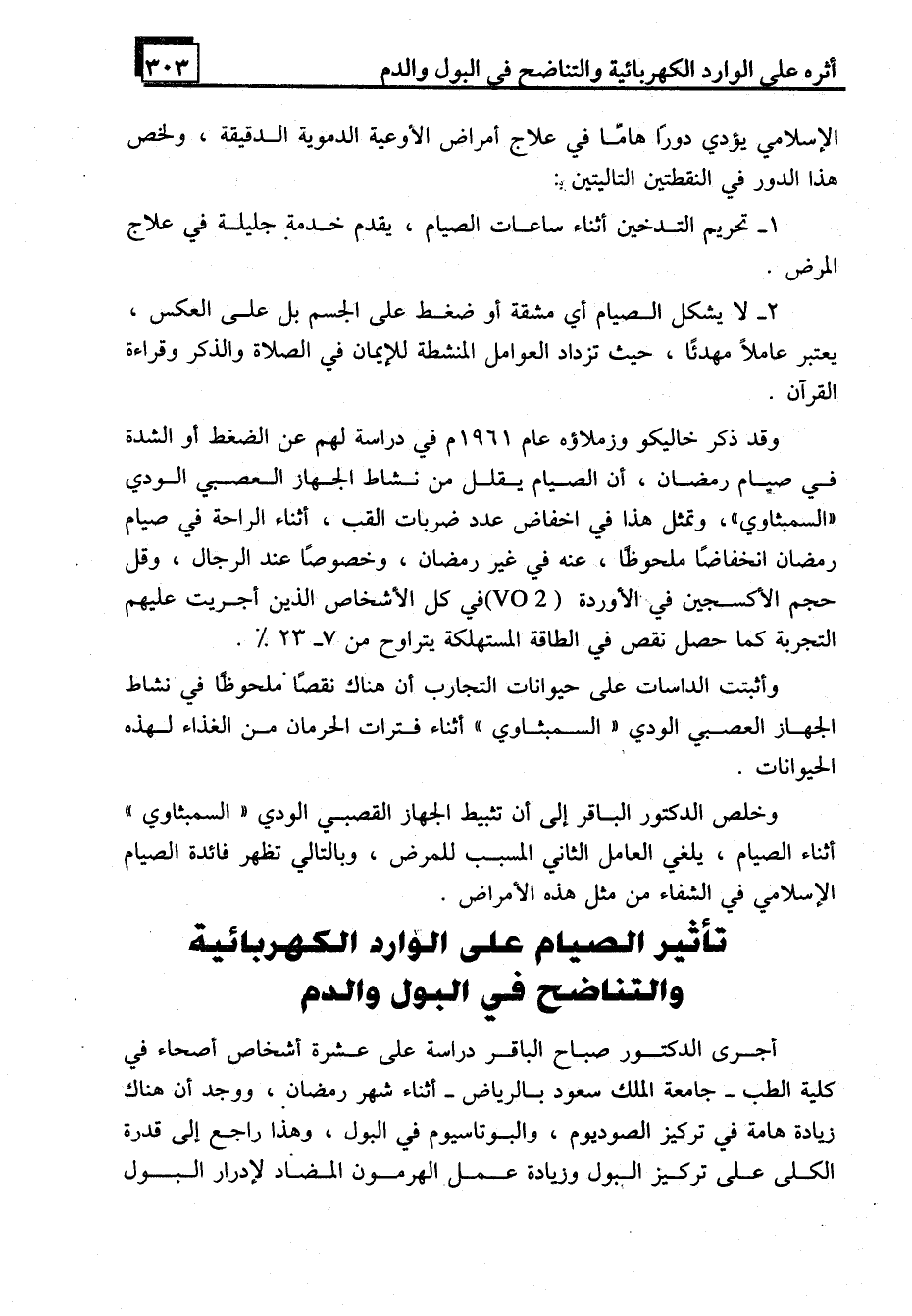 تأثير الصيام على الوارد الكهربائية والتناضح في البول والدم