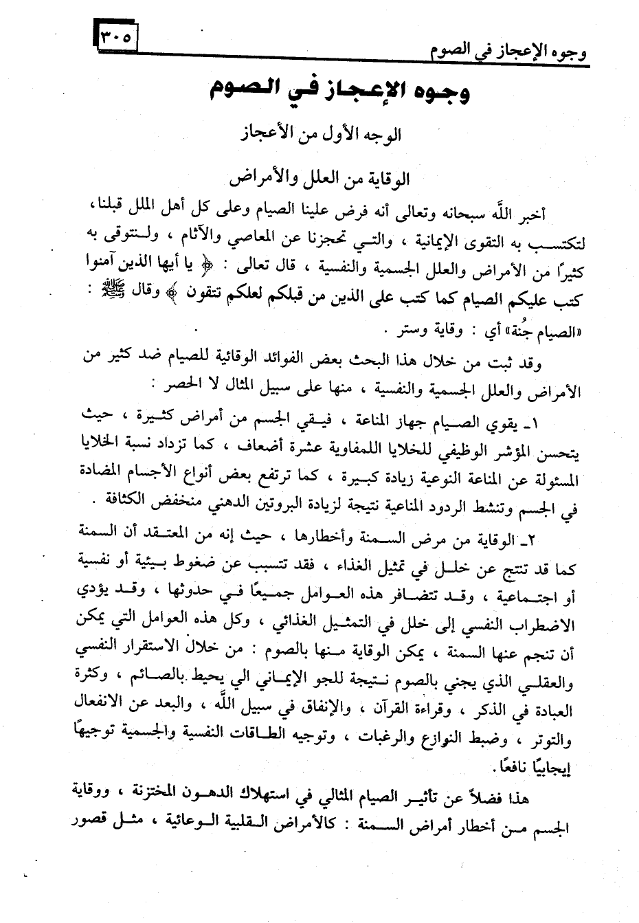 الوجه الأول من الإعجاز الوقاية من العلل والأمراض