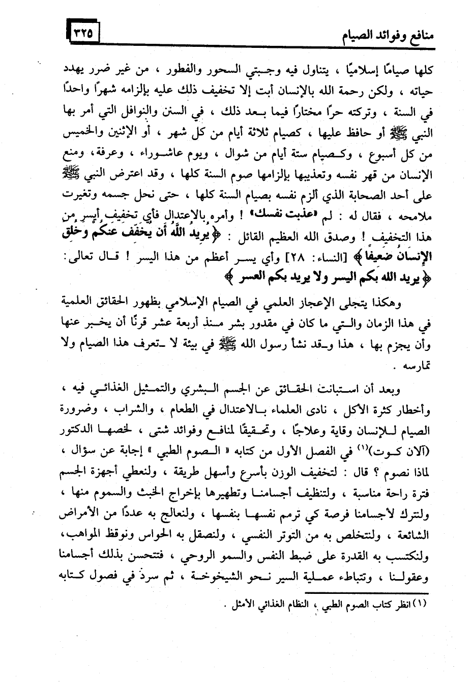 (1) انظر كتاب الصوم الطبي، النظام الغذائي الأمثل.