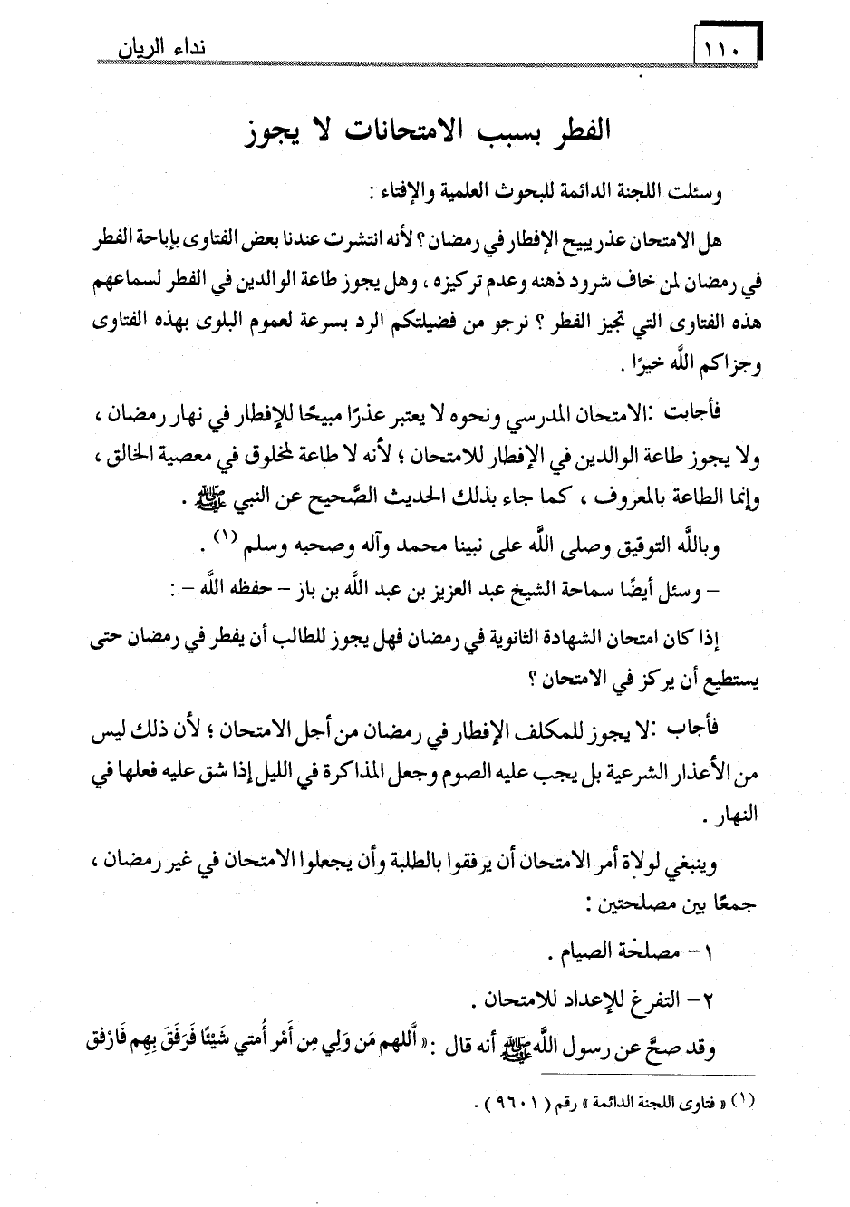 (1) "فتاوى اللجنة الدائمة" رقم (9601) .