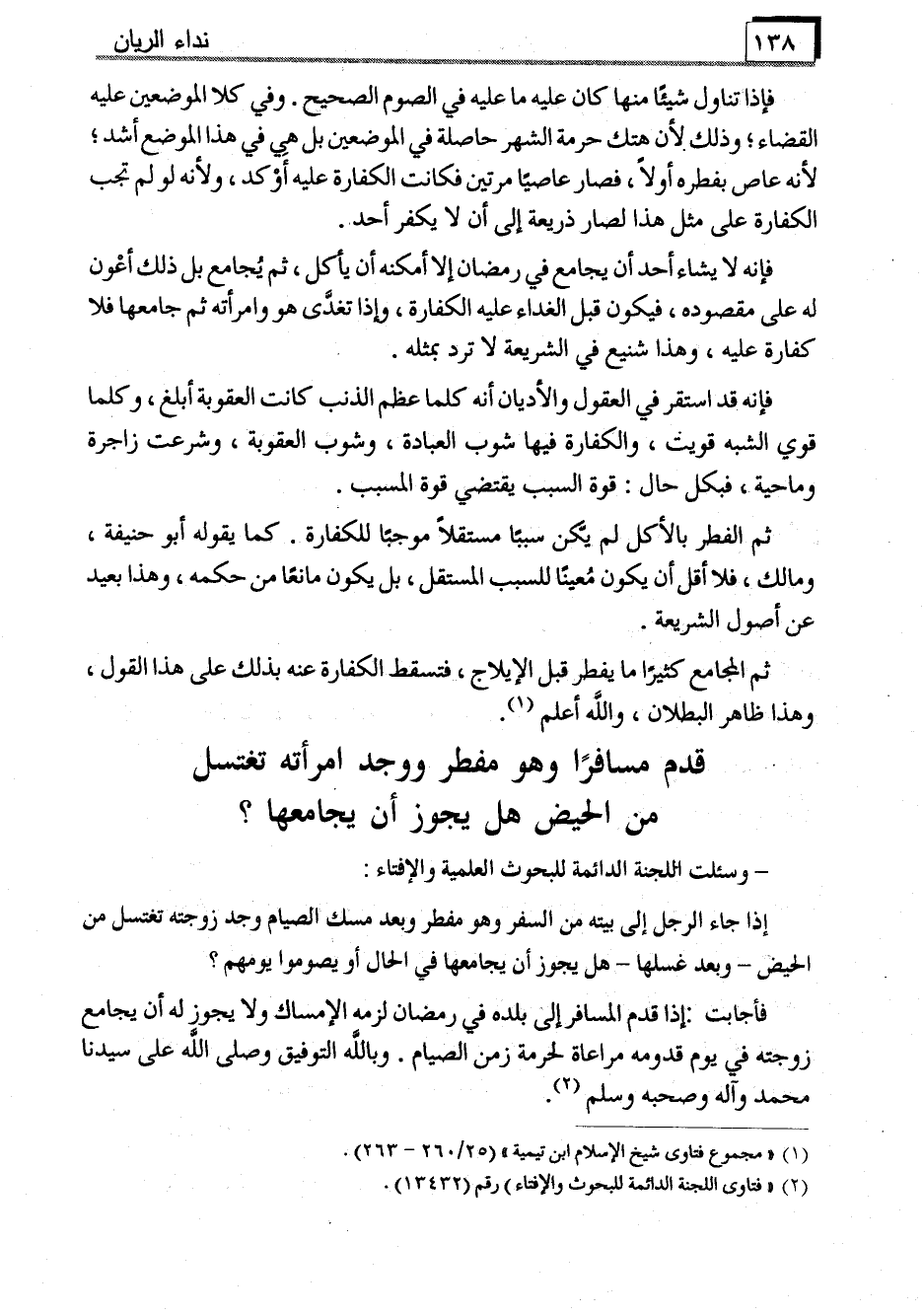 (2) "فتاوى اللجنة الدائمة للبحوث والإفتاء" رقم (13432) .