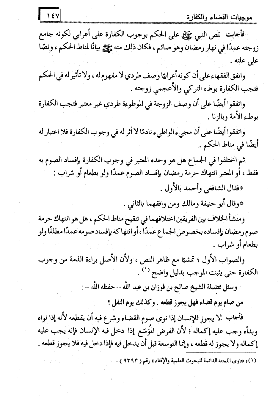 (1) "فتاوى اللجنة الدائمة للبحوث العلمية والإفتاء" رقم (9393) .