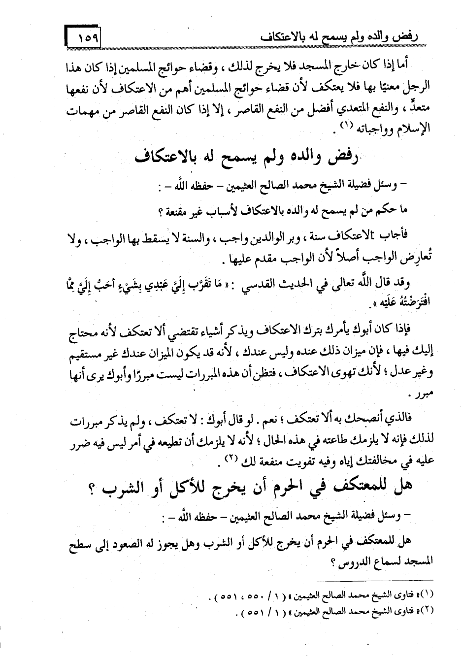 (1) "فتاوى الشيخ محمد الصالح العثيمين" (1/550، 551) .