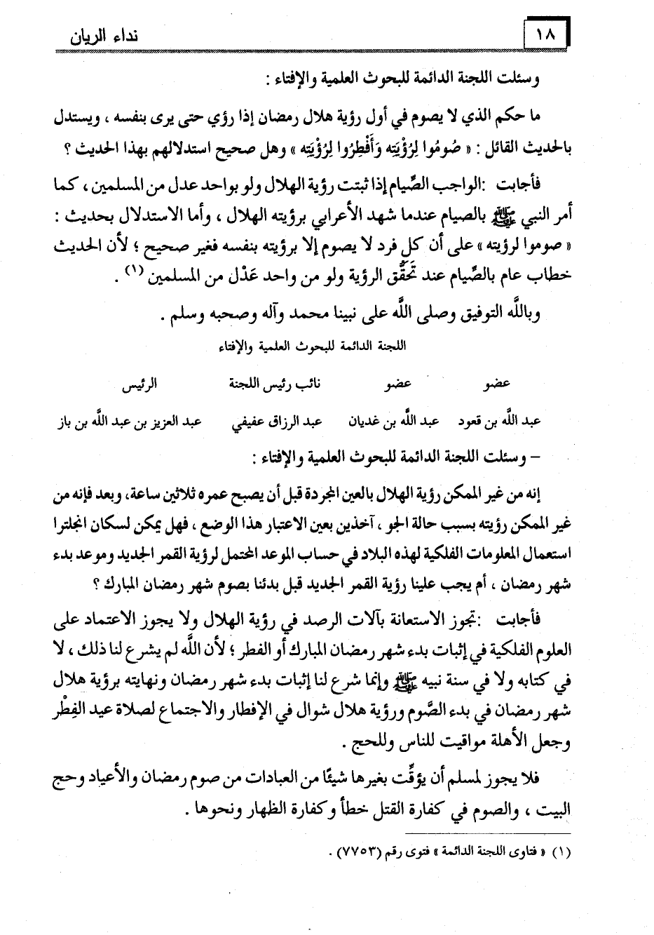 (1) "فتاوى اللجنة الدائمة" فتوى رقم (7753) .