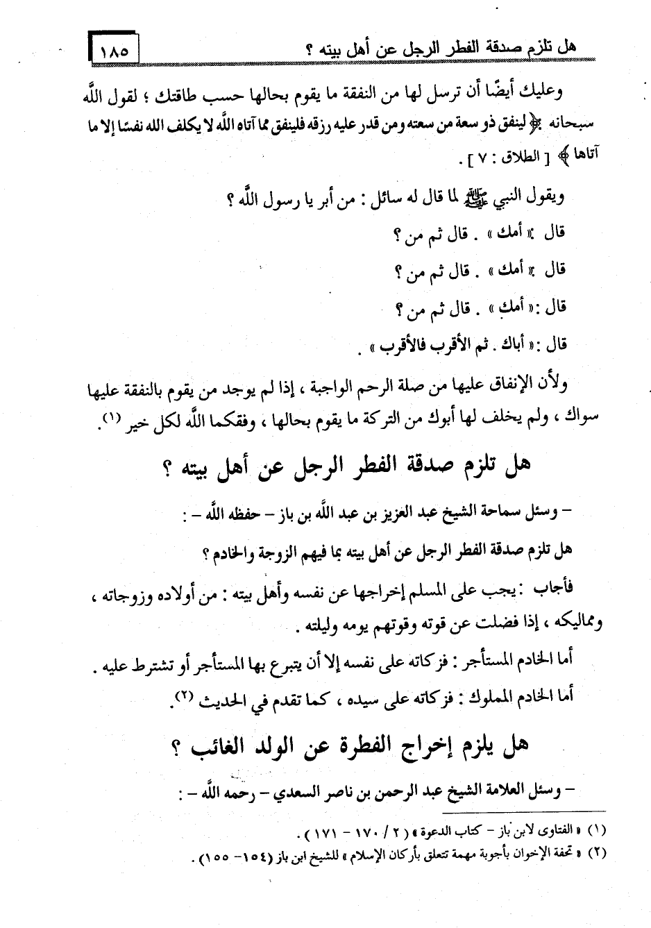(2) "تحفة الإخوان بأجوبة مهمة تتعلق بأركان الإسلام" للشيخ ابن باز (154-155) .