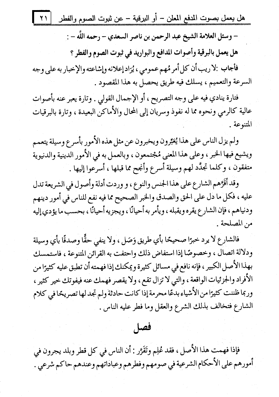 - وسئل العلامة الشيخ عبد الرحمن بن ناصر السعدي -رحمه الله-: