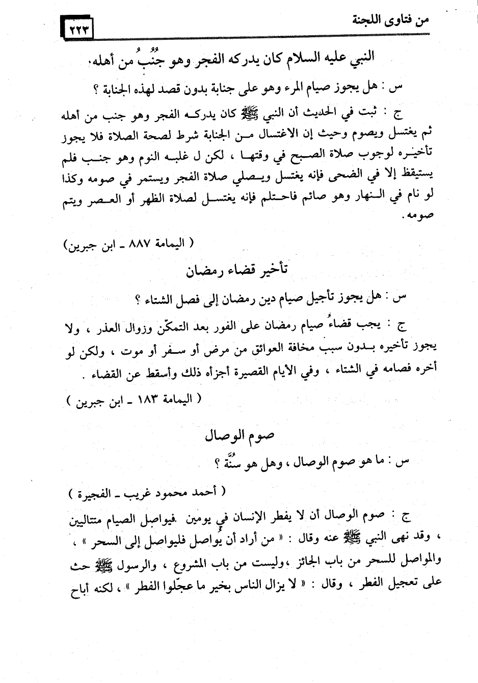 س: هل يجوز صيام المرء وهو على جنابة بدون قصد لهذه الجنابة؟