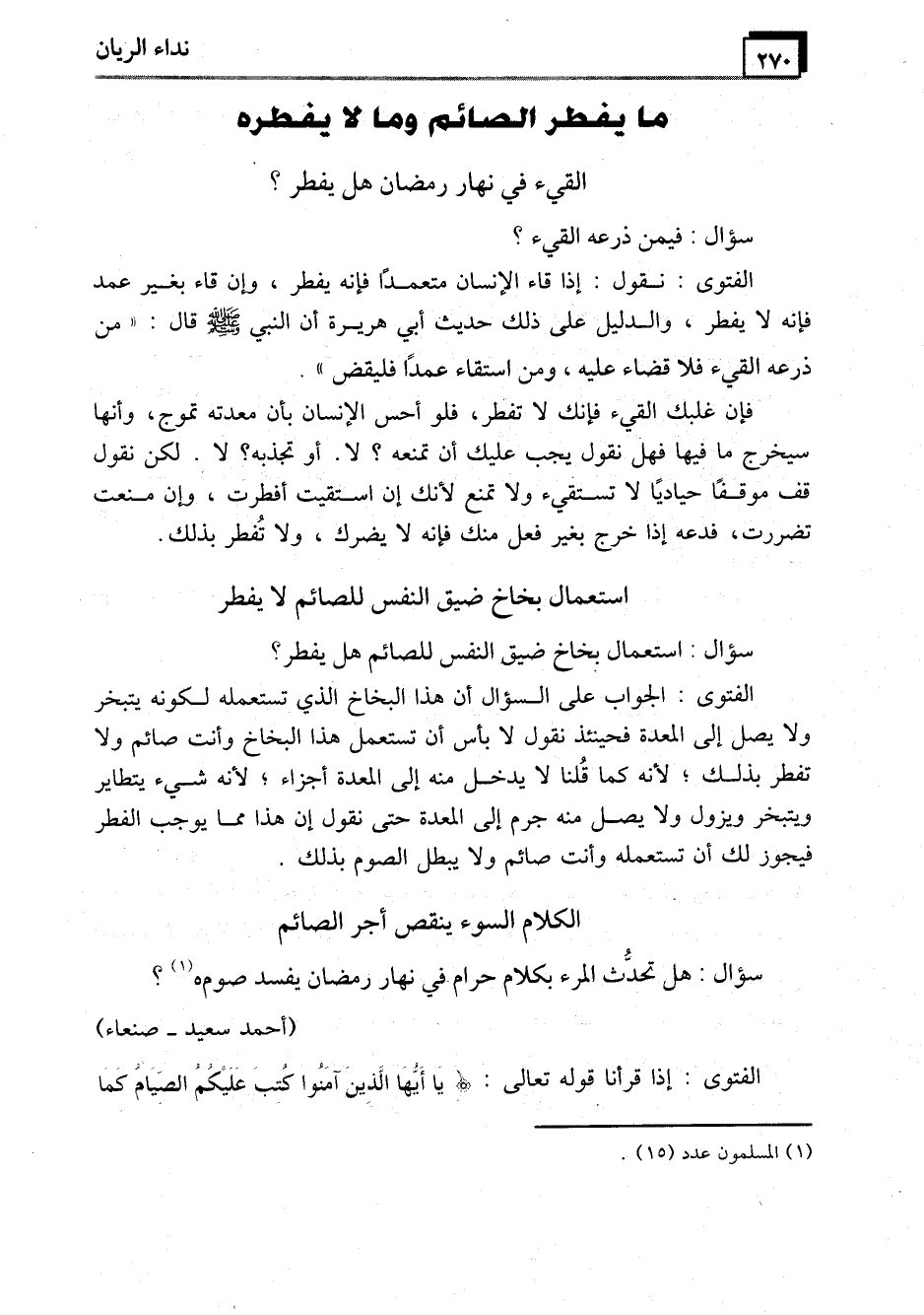 سؤال: استعمال بخاخ ضيق النفس للصائم هل يفطر؟