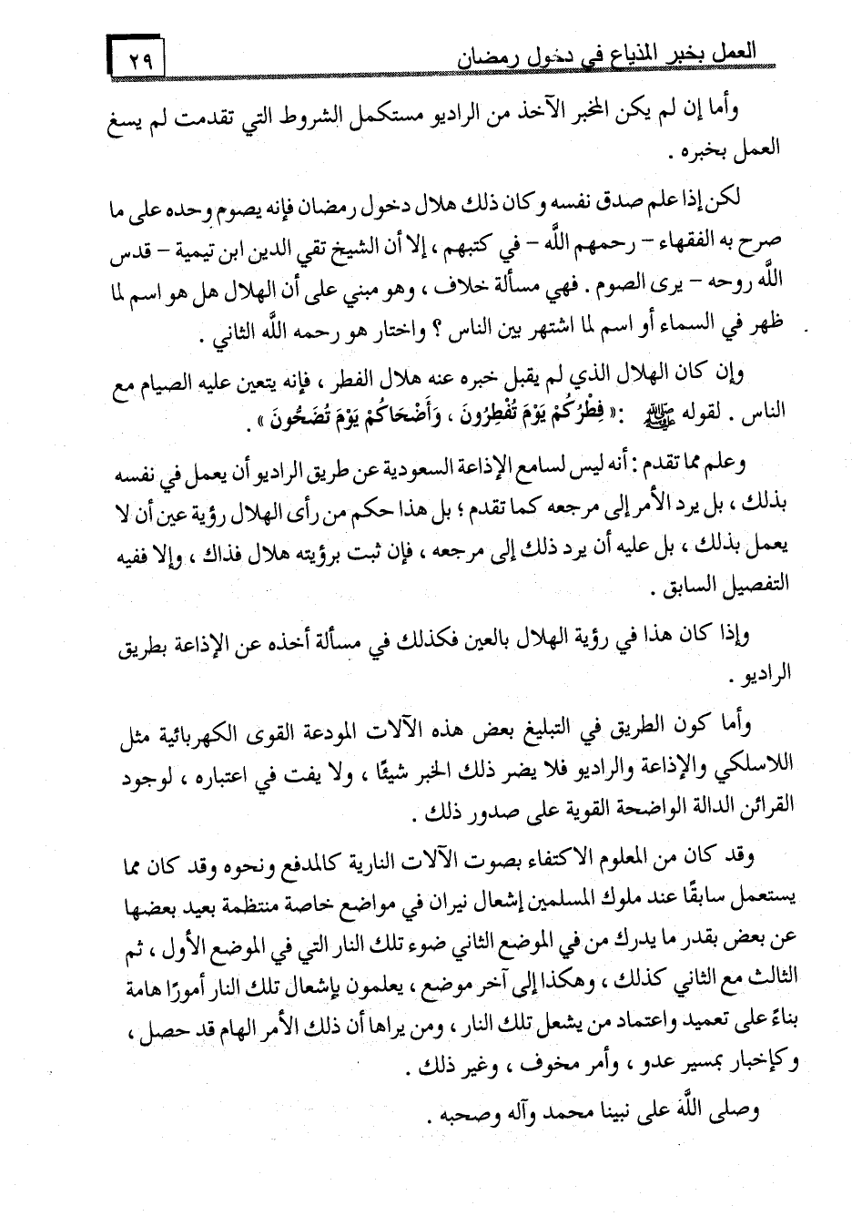 وإذا كان هذا في رؤية الهلال بالعين فكذلك في مسألة أخذه عن الإذاعة بطريق الراديو.