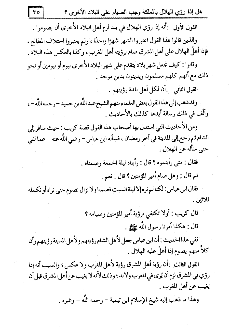 وقالوا: كيف نجعل شهر بلاد يتقدم على شهر البلاد الأخرى بيوم أو بيومين أو نحو ذلك مع أنهم كلهم مسلمون ويدينون بدين موحد.