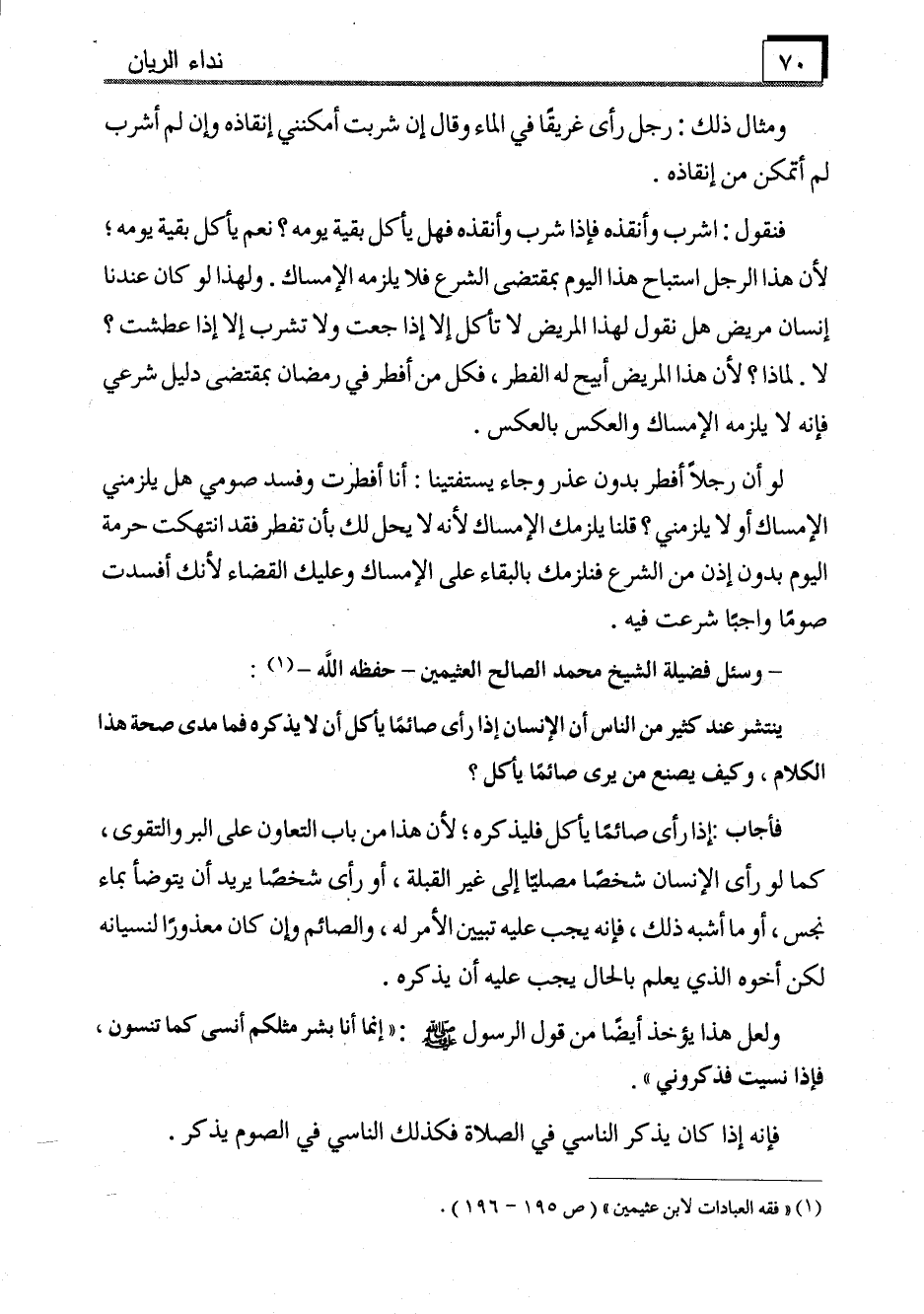 (1) "فقه العبادات لابن عثيمين" (ص 195-196) .