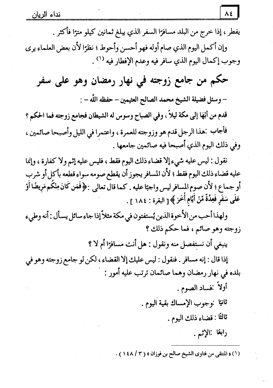(1) "المنتقى من فتاوى الشيخ صالح بن فوزان" (3/148) .
