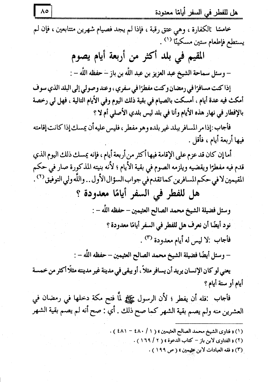 (1) "فتاوى الشيخ محمد الصالح العثيمين" (1/480-481) .