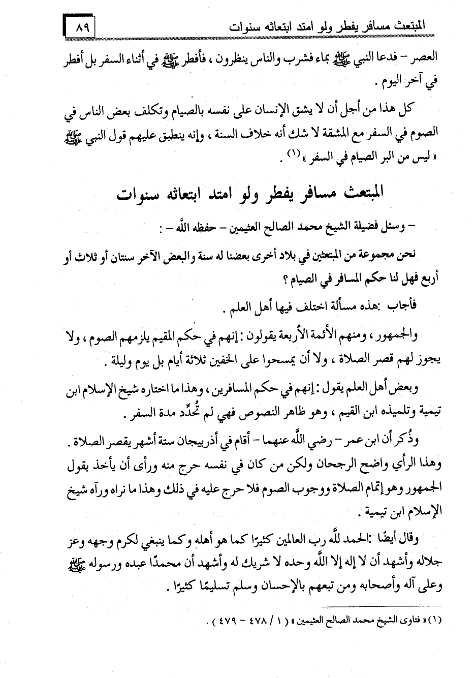 (1) "فتاوى الشيخ محمد الصالح العثيمين" (1/478-479) .