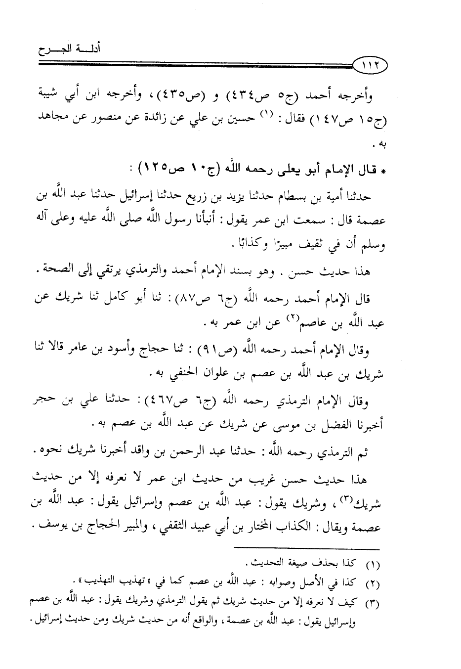 (¬3) كيف لا نعرفه إلا من حديث شريك ثم يقول الترمذي وشريك يقول: عبد الله بن عصم وإسرائيل يقول: عبد الله بن عصمة، والواقع أنه من حديث شريك ومن حديث إسرائيل.