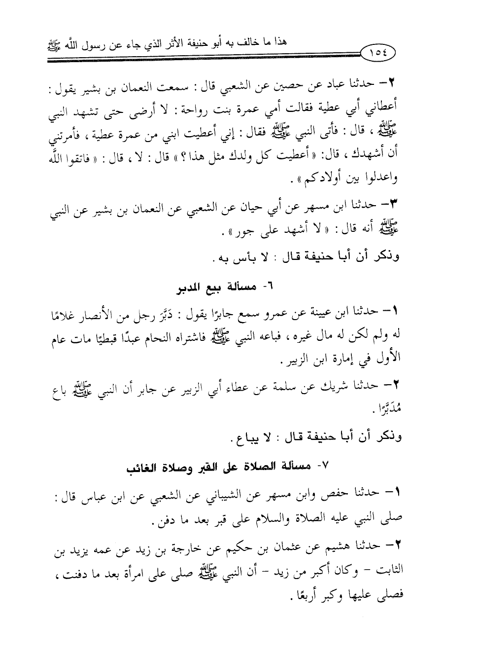 3 - حدثنا ابن مسهر عن أبي حيان عن الشعبي عن النعمان بن بشير عن النبي - صلى الله عليه وسلم - أنه قال: «لا أشهد على جور».