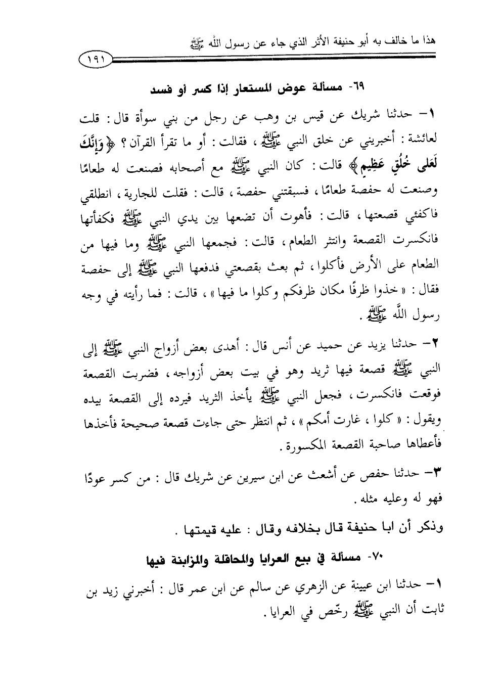70 - مسألة في بيع العرايا والمحاقلة والمزابنة فيها