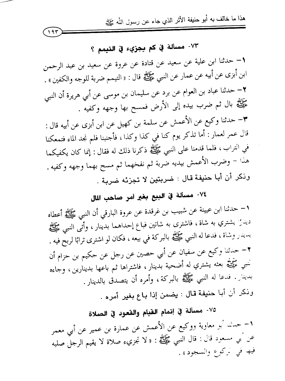 2 - حدثنا عباد بن العوام عن برد عن سليمان بن موسى عن أبي هريرة أن النبي صلى الله عليه وعلى آله وسلم بال ثم ضرب بيده إلى الأرض فمسح بها وجهه وكفيه.
