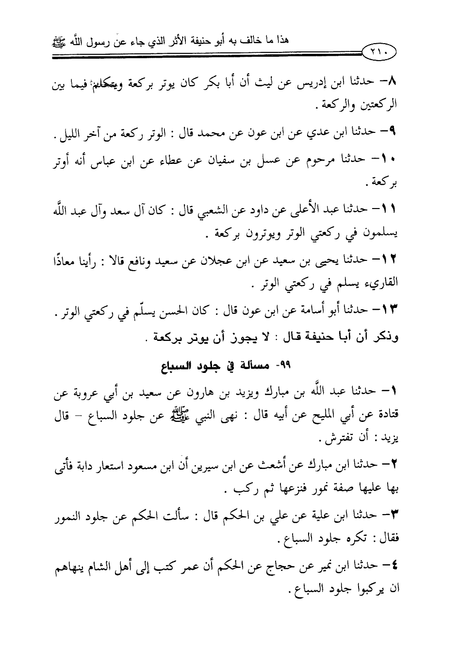 99 - مسألة في جلود السباع