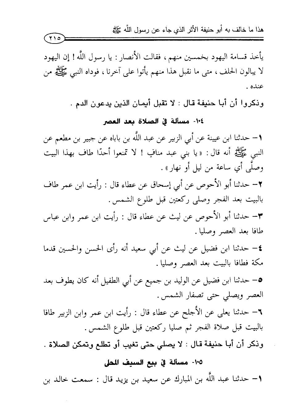 يأخذ قسامة اليهود بخمسين منهم، فقالت الأنصار: يا رسول الله! إن اليهود لا يبالون الحلف، متى ما نقبل هذا منهم يأتوا على آخرنا، فوداه النبي صلى الله عليه وعلى آله وسلم من عنده.