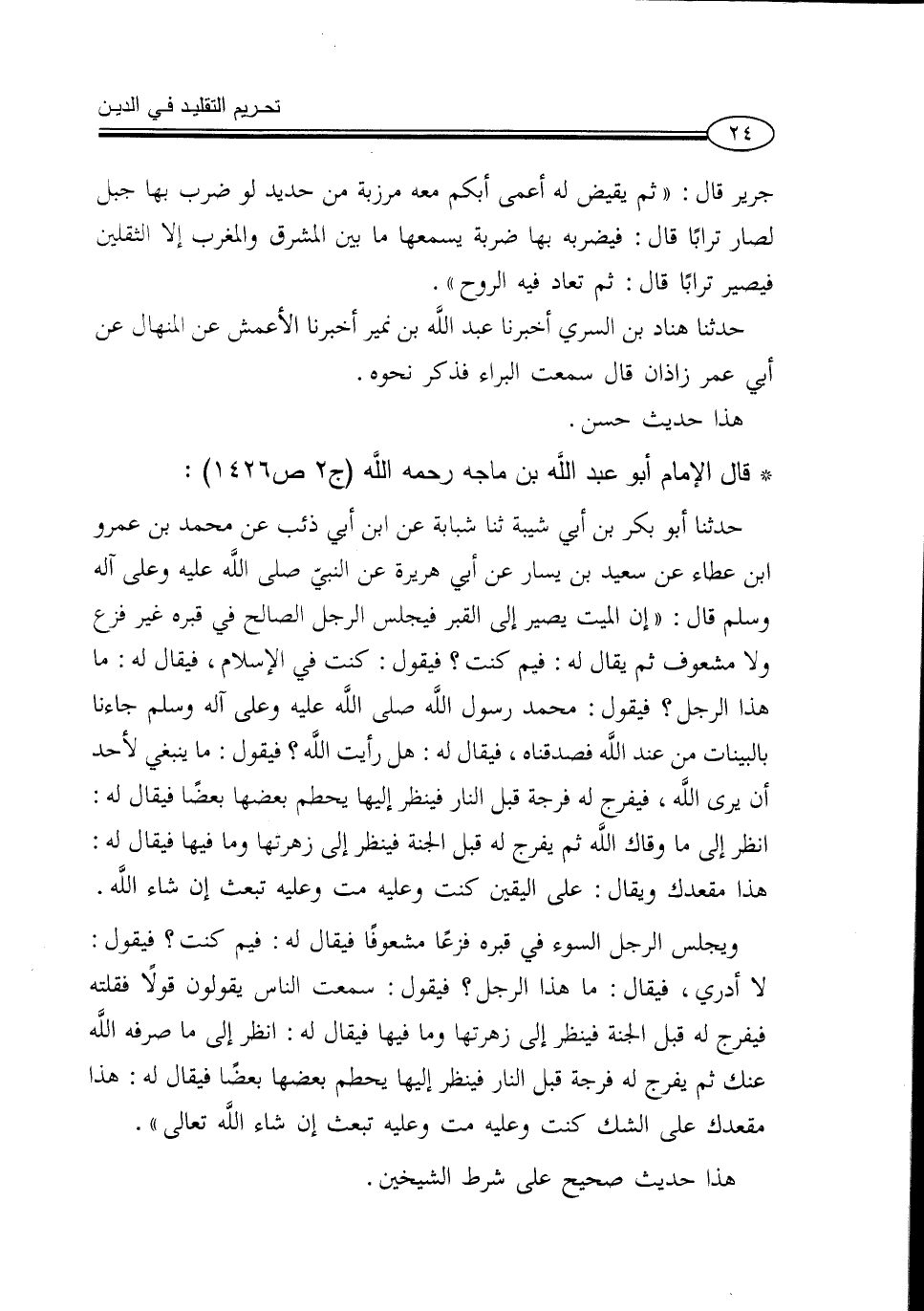 * قال الإمام أبو عبد الله بن ماجه رحمه الله (ج2ص1426):