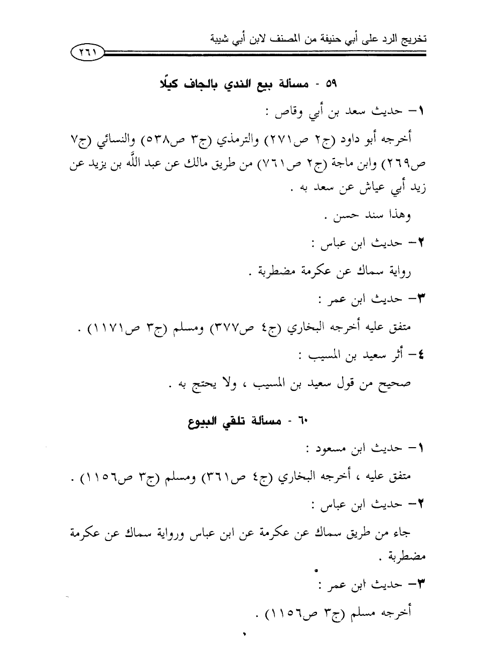 أخرجه أبو داود (ج2 ص271) والترمذي (ج3 ص538) والنسائي (ج7 ص269) وابن ماجة (ج2 ص761) من طريق مالك عن عبد الله بن يزيد عن زيد أبي عياش عن سعد به.