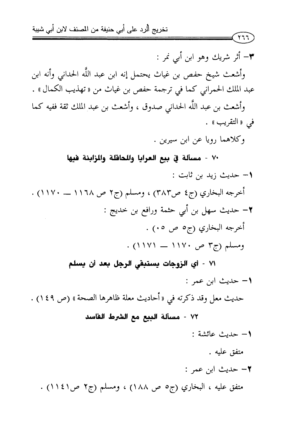 70 - مسألة في بيع العرايا والمحاقلة والمزابنة فيها