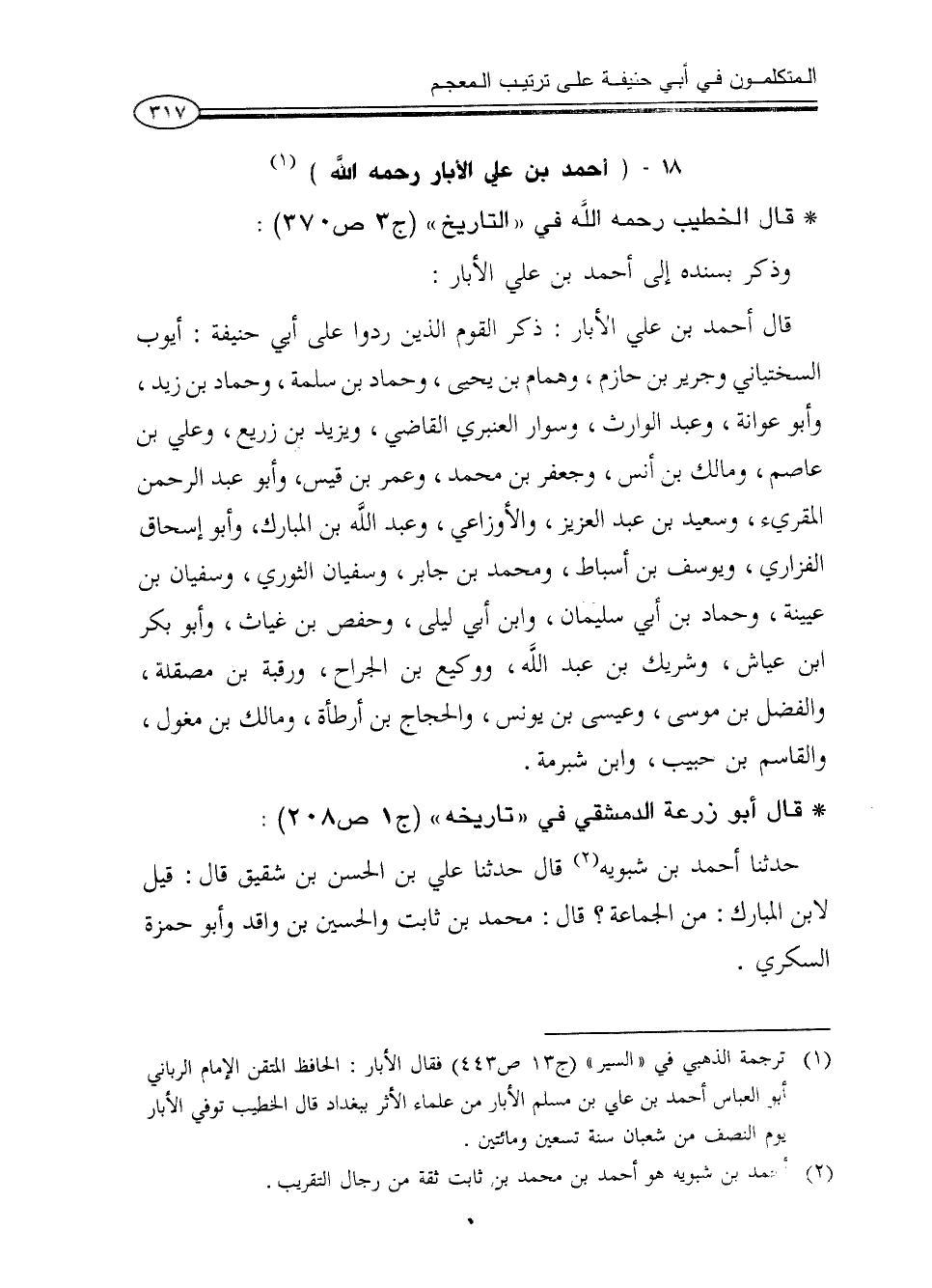 (¬1) ترجمه الذهبي في «السير» (ج13ص443) فقال الأبار: الحافظ المتقن الإمام الرباني أبو العباس أحمد بن علي بن مسلم الأبار من علماء الأثر ببغداد قال الخطيب توفي الأبار يوم النصف من شعبان سنة تسعين ومائتين.