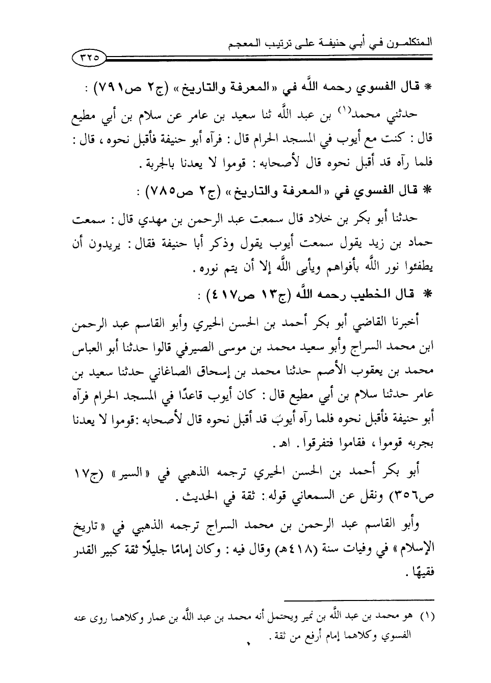 (¬1) هو محمد بن عبد الله بن نمير ويحتمل أنه محمد بن عبد الله بن عمار وكلاهما روى عنه الفسوي وكلاهما إمام أرفع من ثقة.