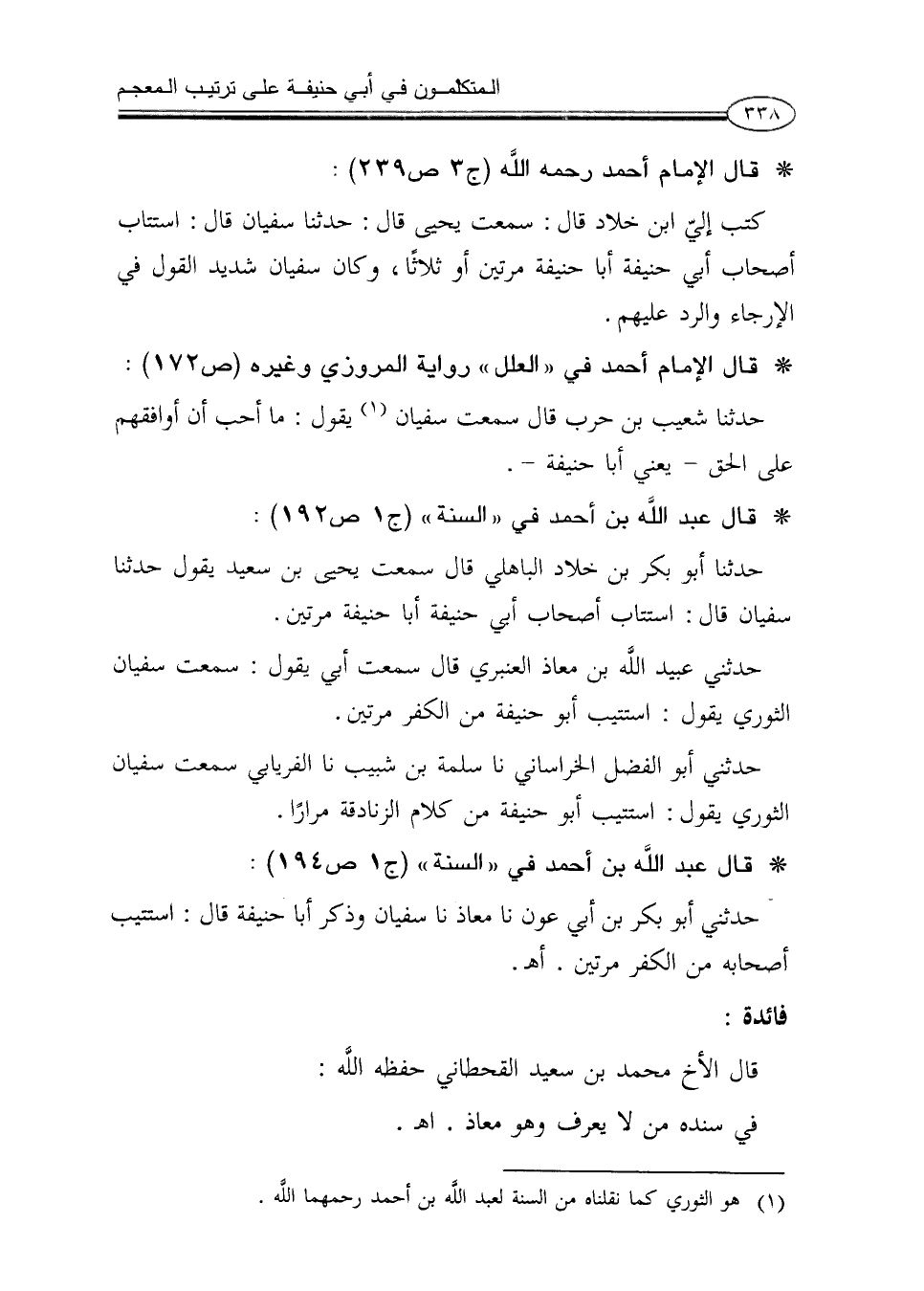 (¬1) هو الثوري كما نقلناه من السنة لعبد الله بن أحمد رحمهما الله.