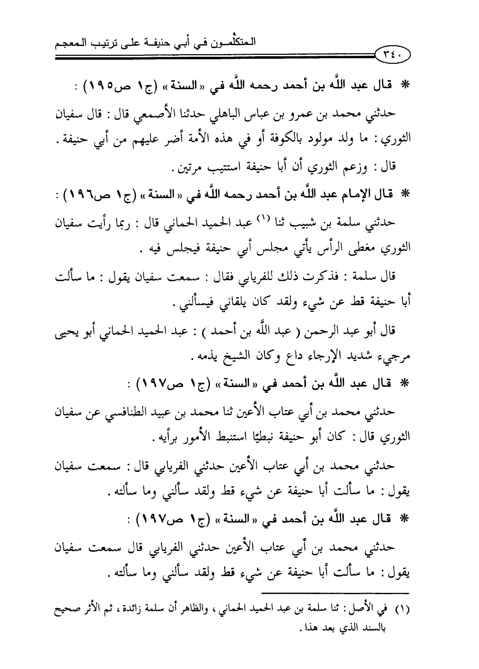 * قال عبد الله بن أحمد في «السنة» (ج1ص197):