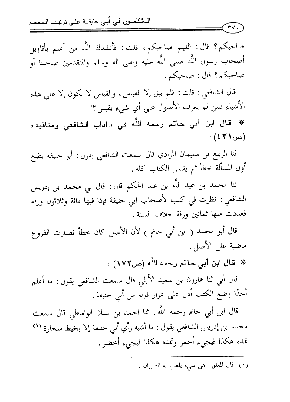 * قال ابن أبي حاتم رحمه الله في «آداب الشافعي ومناقبه» (ص431):