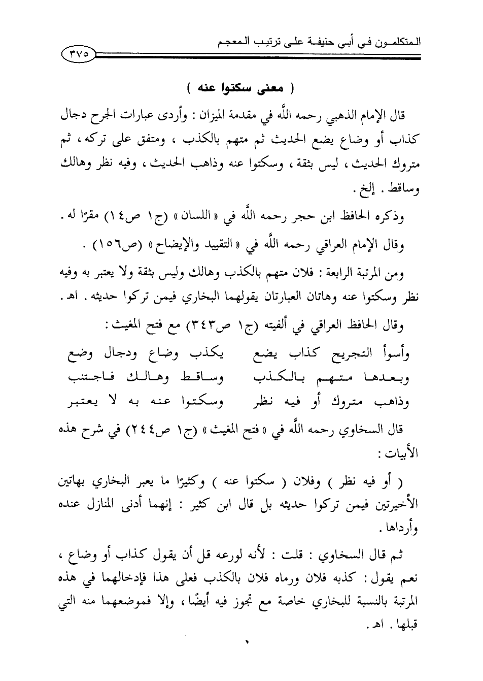 وذاهب متروك أو فيه نظر ... وسكتوا عنه به لا يعتبر