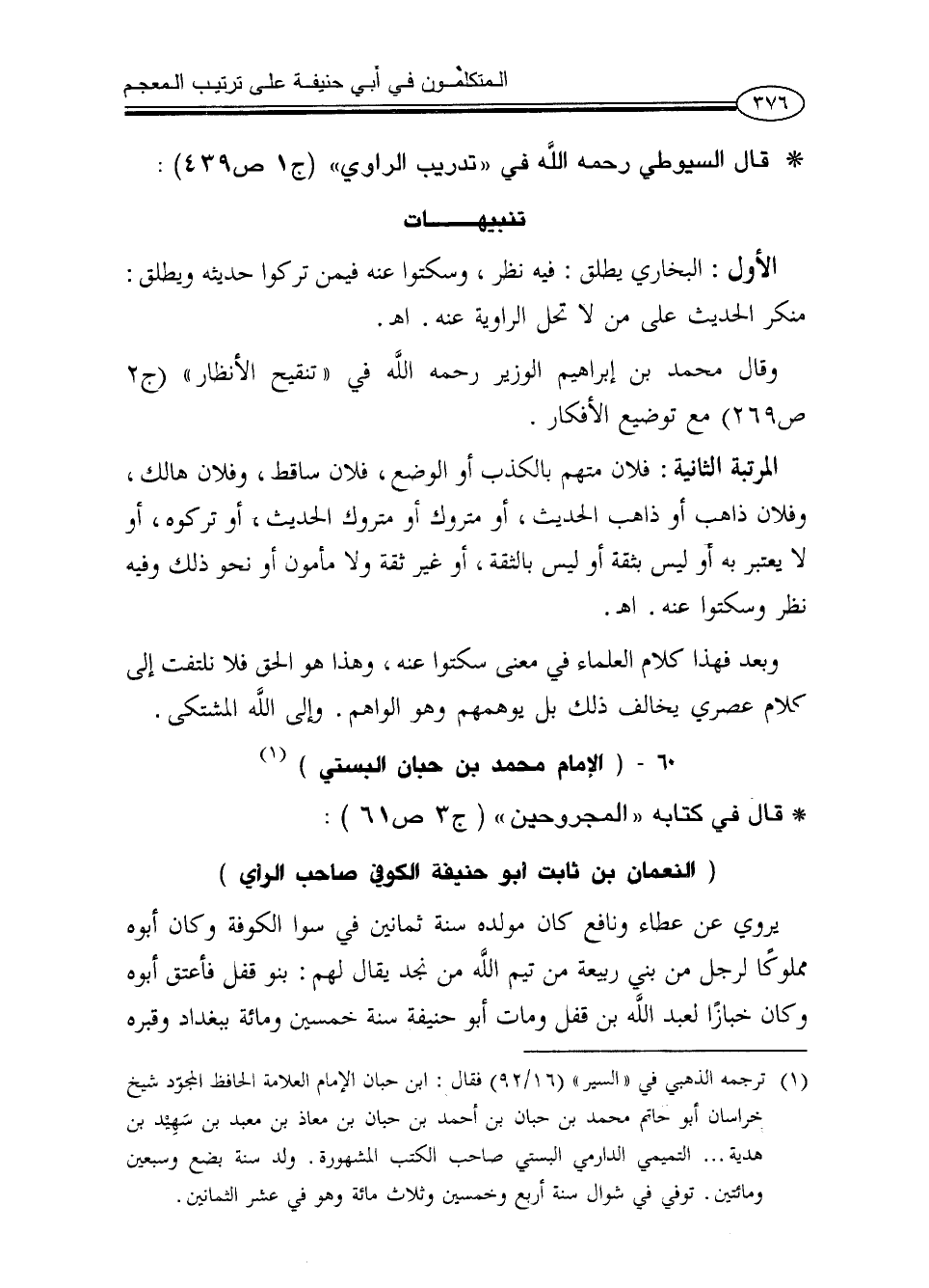 (النعمان بن ثابت أبو حنيفة الكوفي صاحب الرأي)