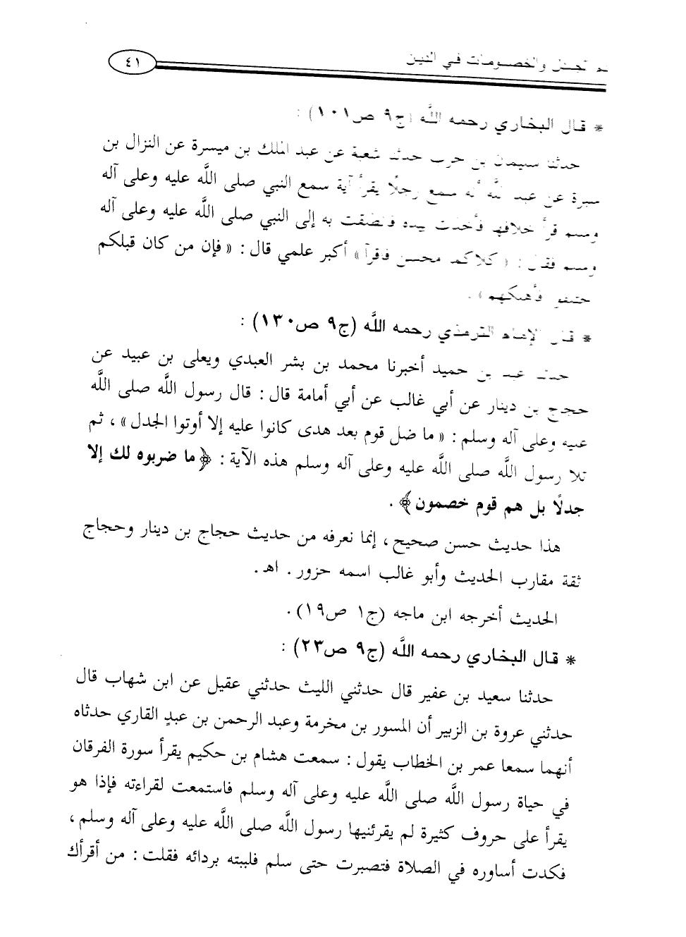 * قال الإمام الترمذي رحمه الله (ج9 ص130):