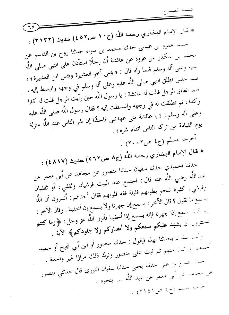 * قال الإمام البخاري رحمه الله (ج8ص562) حديث (4817):