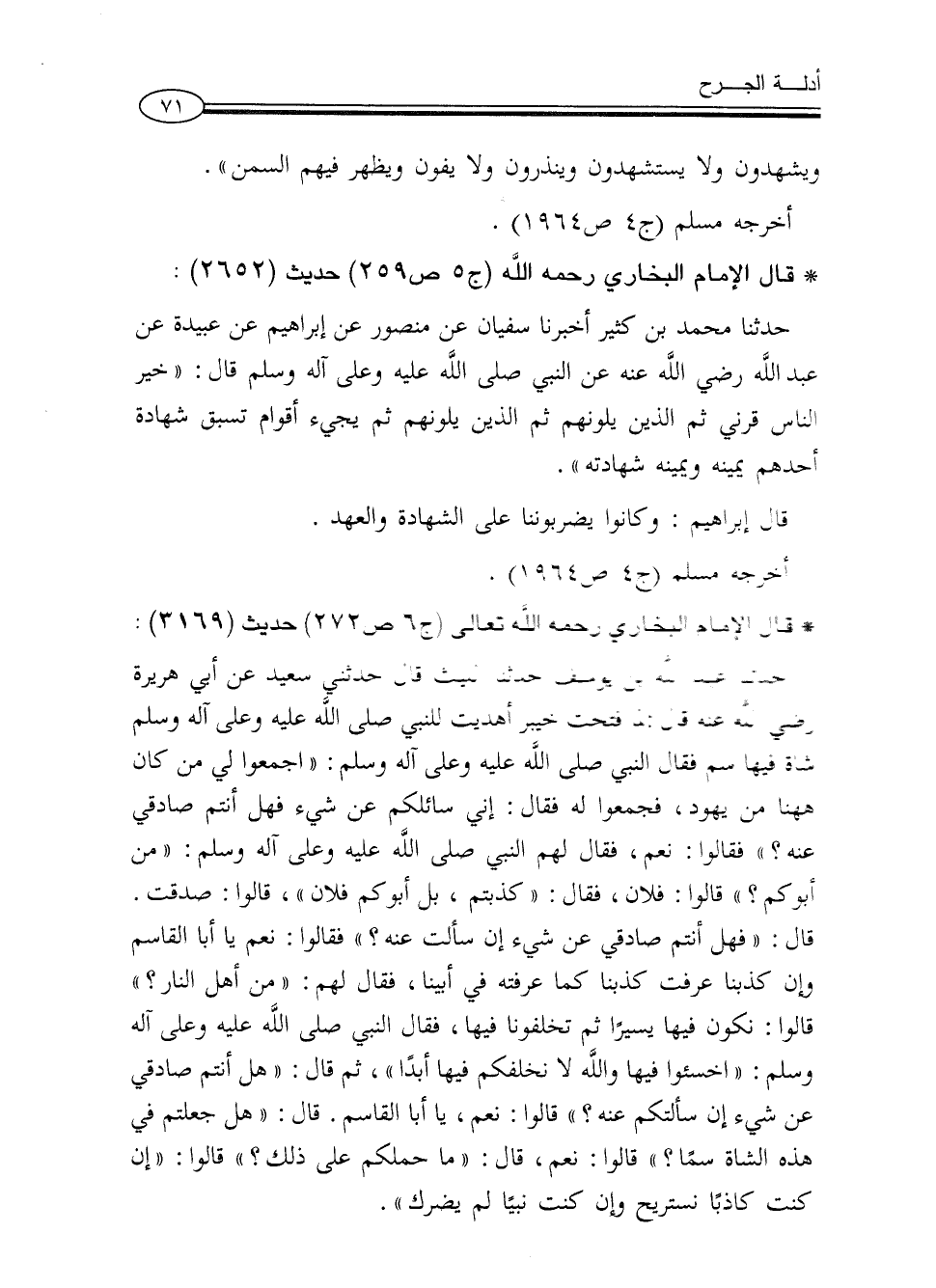* قال الإمام البخاري رحمه الله (ج5 ص259) حديث (2652):