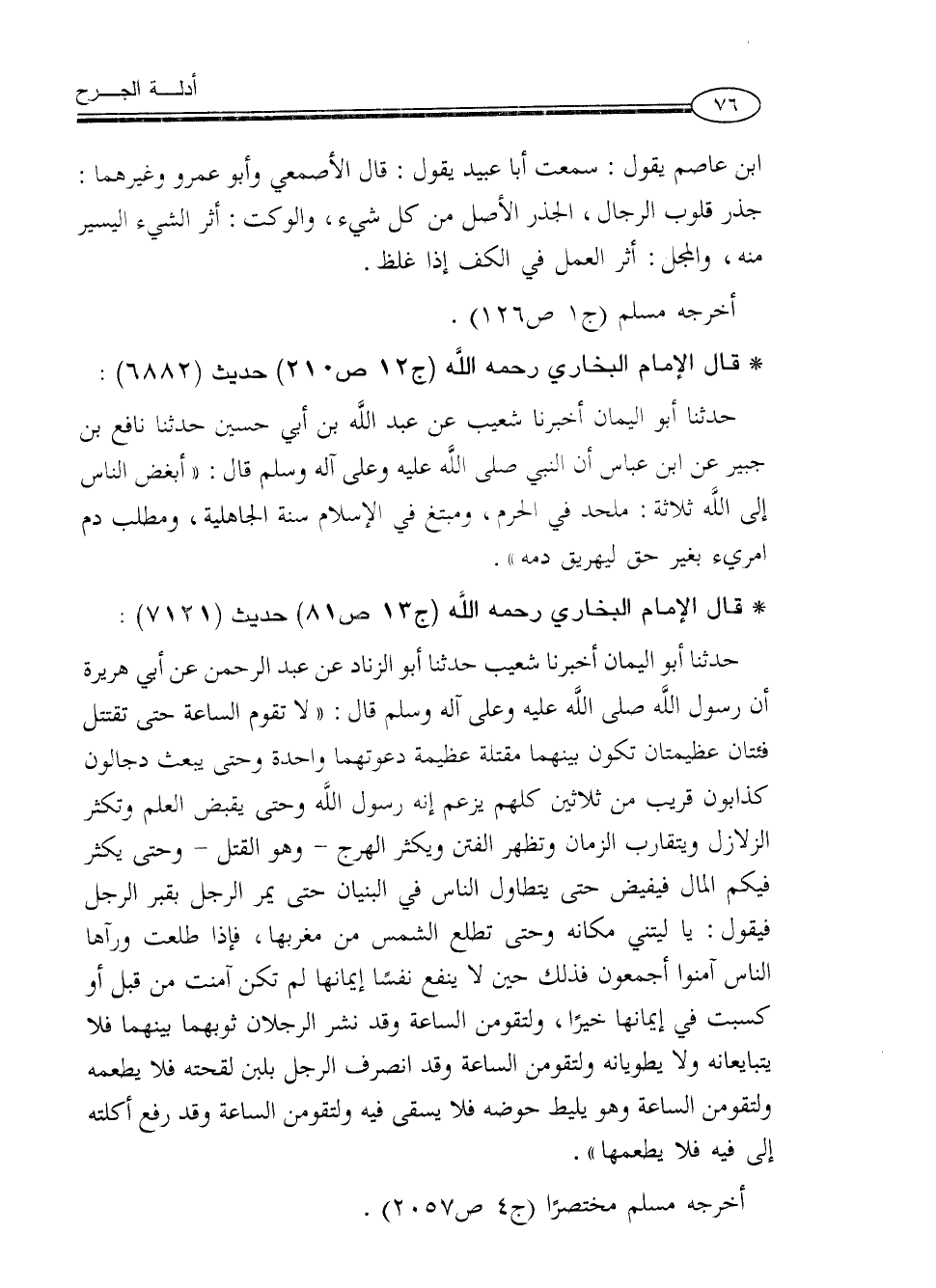 * قال الإمام البخاري رحمه الله (ج12 ص210) حديث (6882):