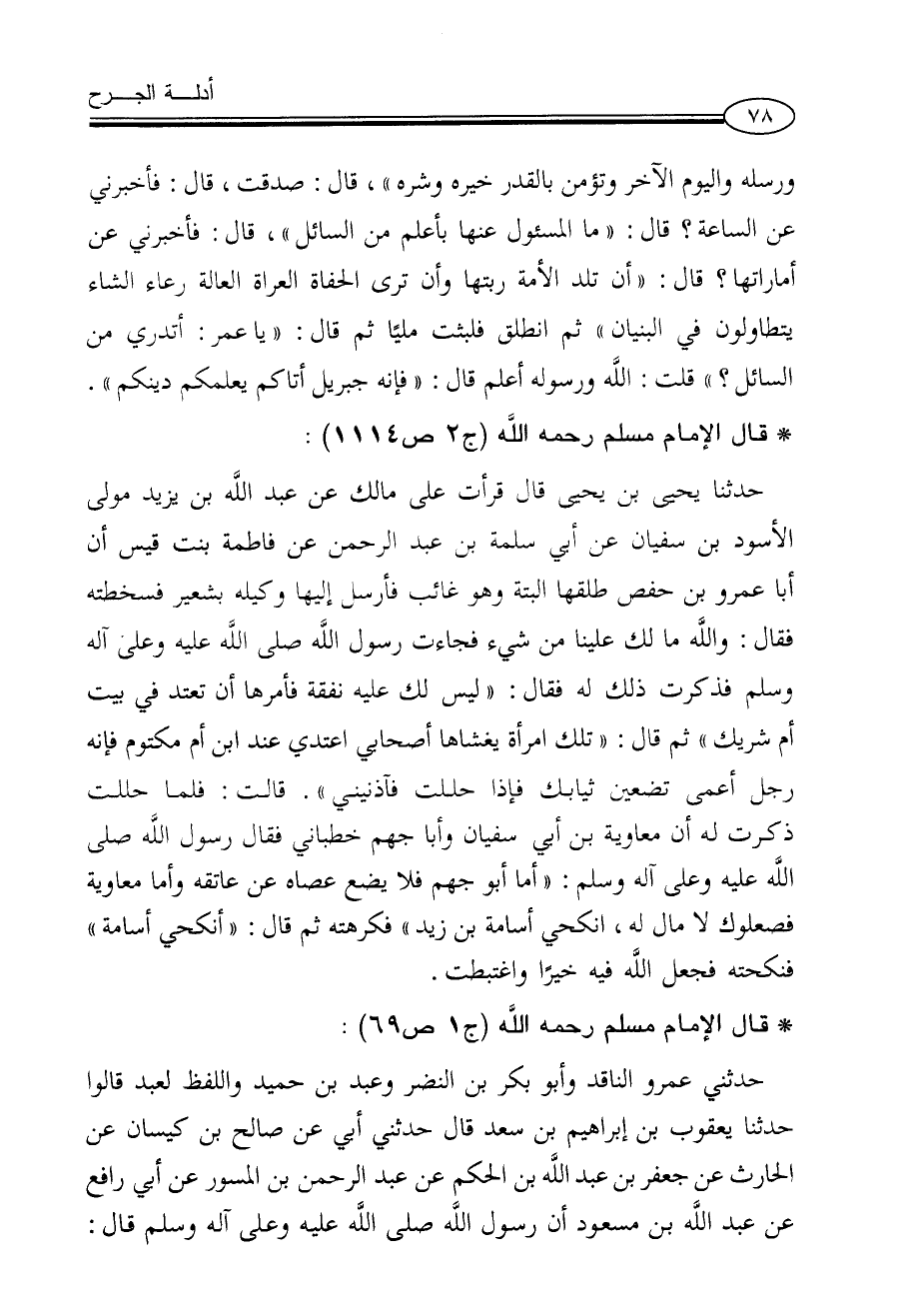 * قال الإمام مسلم رحمه الله (ج1ص69):